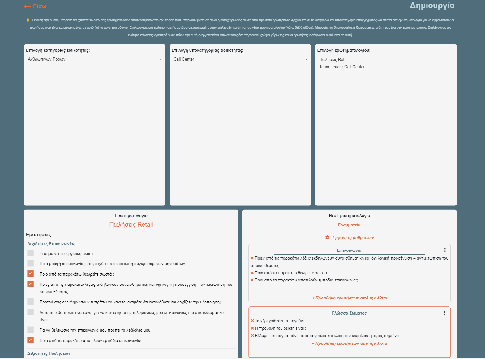 • Μπορείτε να 'χτίσετε' νέα ερωτηματολόγια με ενότητες και ερωτήσεις της αρεσκείας σας.